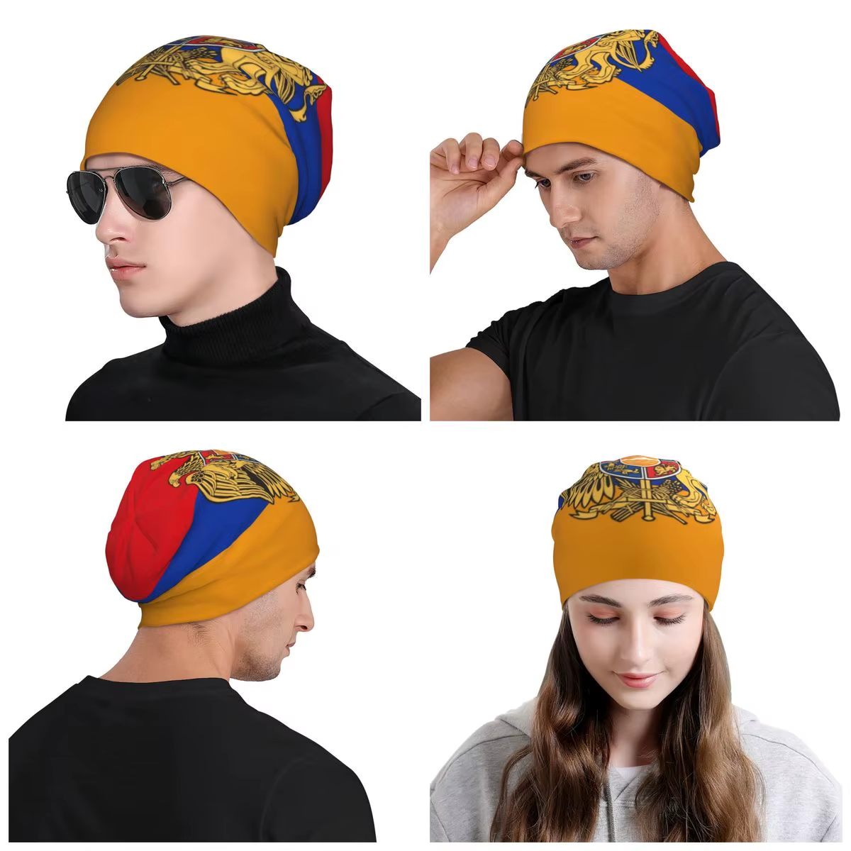 Armenian flag beanie with The national coat of arms of Armenia.